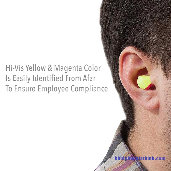 - Nút tai giảm ồn dùng một lần Honeywell LL-LS4 chất liệu bọt Polyurethane có 2 màu vàng và hồng tươi rực rỡ giúp dễ dàng nhận dạng từ xa, giúp đảm bảo tuân thủ tại nơi làm việc