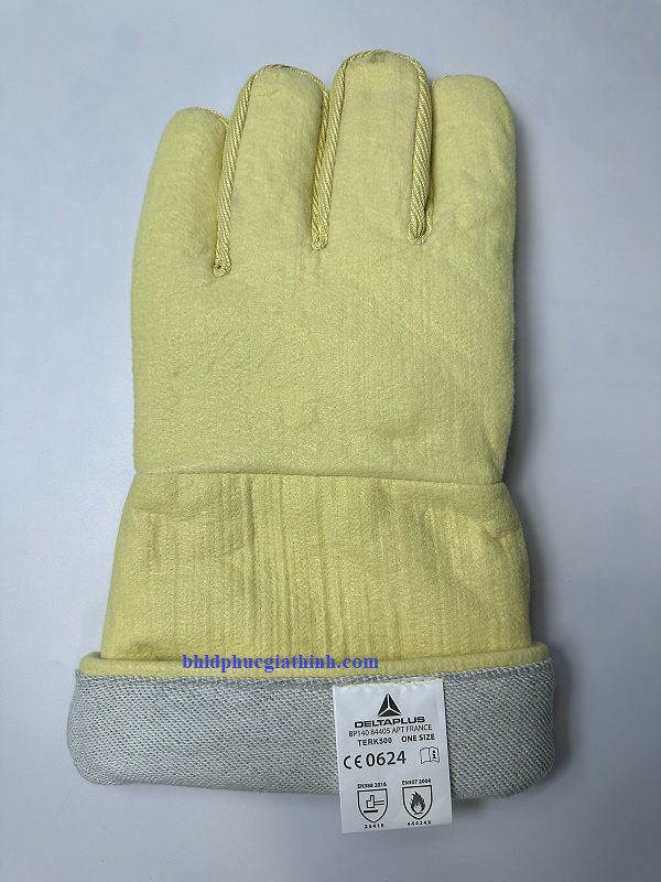 - Găng tay chịu nhiệt 500 độ Delta Plus TERK 500 XTREM có cấu tạo 2 lớp. Lớp ngoài được làm từ sợi aramid 100%, có tính năng chống cắt đạt cấp độ 5/5 và khả năng chịu nhiệt chống nóng hiệu quả. Lớp trong là lớp sợi Cotton mềm mại và cách nhiệt, giúp người dùng thao tác cầm nắm thoải mái