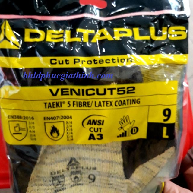 - GĂNG TAY CHỐNG CẮT CHỊU NHIỆT DELTA PLUS VENICUT 52 được làm từ sợi TAEKI có khả năng chống cắt cao