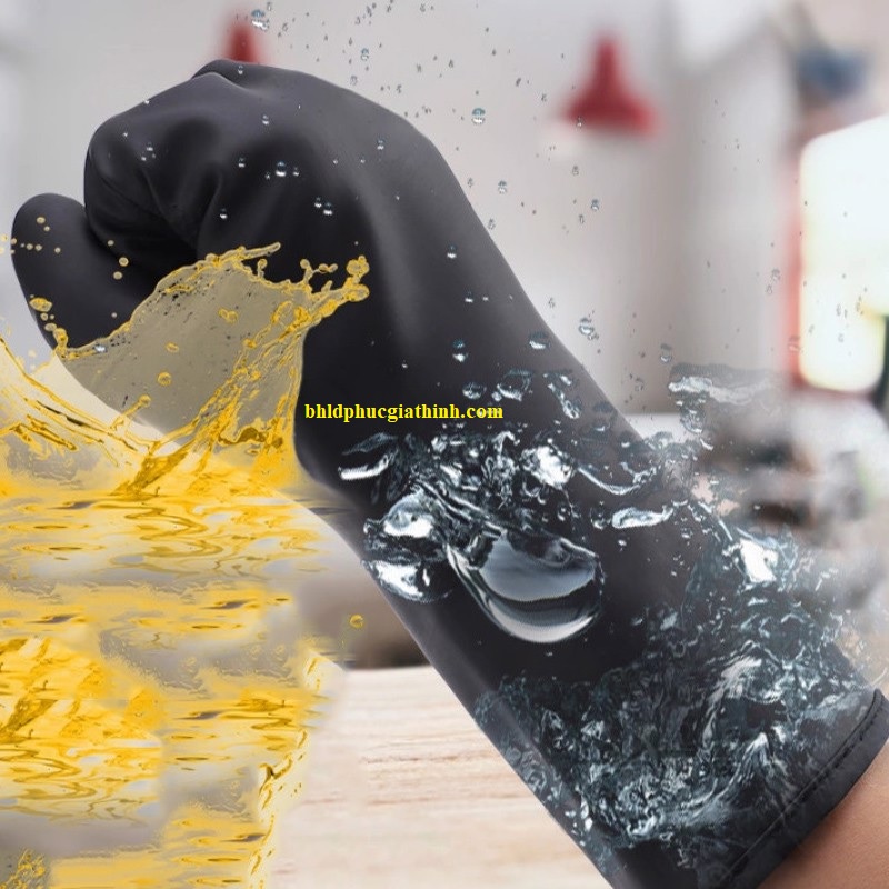 - Ngoài khả năng cách nhiệt tốt, Găng tay cao su chịu nhiệt 250 độ còn có khả năng chống thấm nước, chống dầu và hoá chất