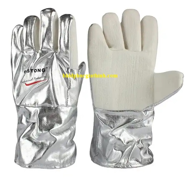 - Găng tay tráng bạc chịu nhiệt 350 độ Castong NFRR 15-34 gồm 2 lớp, lớp ngoài làm bằng sợi Kevler tráng nhôm, lòng bàn tay làm bằng sợi chéo Aramid, lớp trong là len dày và mềm mại.