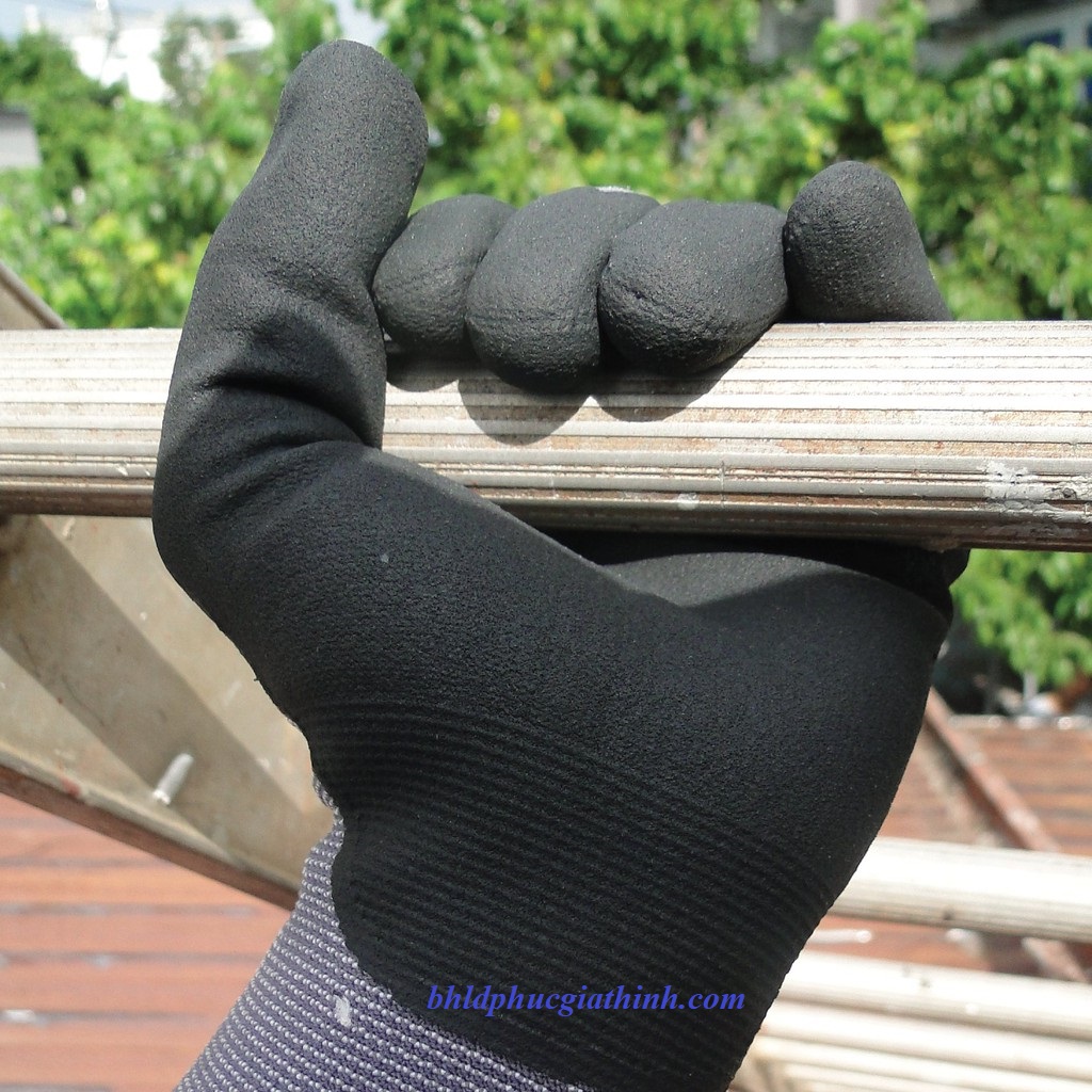 Lớp phủ PU-Nitrile giúp tạo độ bám khi cầm nắm. Vật liệu PU cũng có khả năng chống hao mòn và kháng dầu tốt.