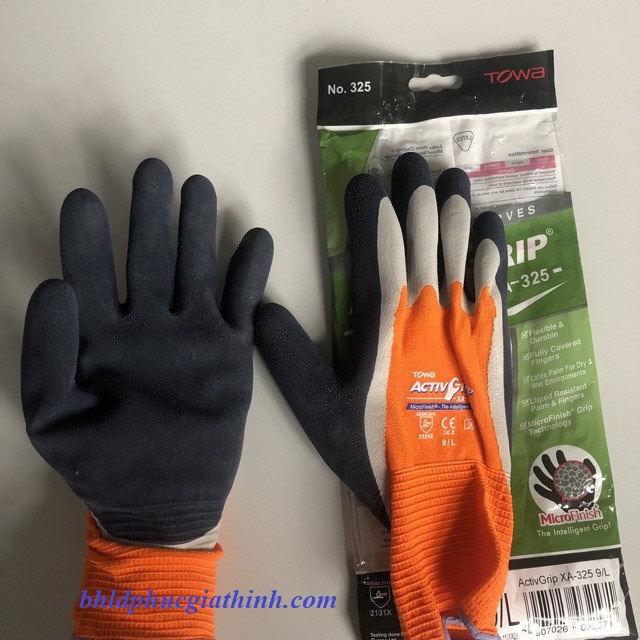 - TOWA ACTIVGRIP XA-325 có lòng bàn tay, ngón tay và ngón cái được nhúng hai lần để bảo vệ chống lại sự xâm nhập của chất lỏng