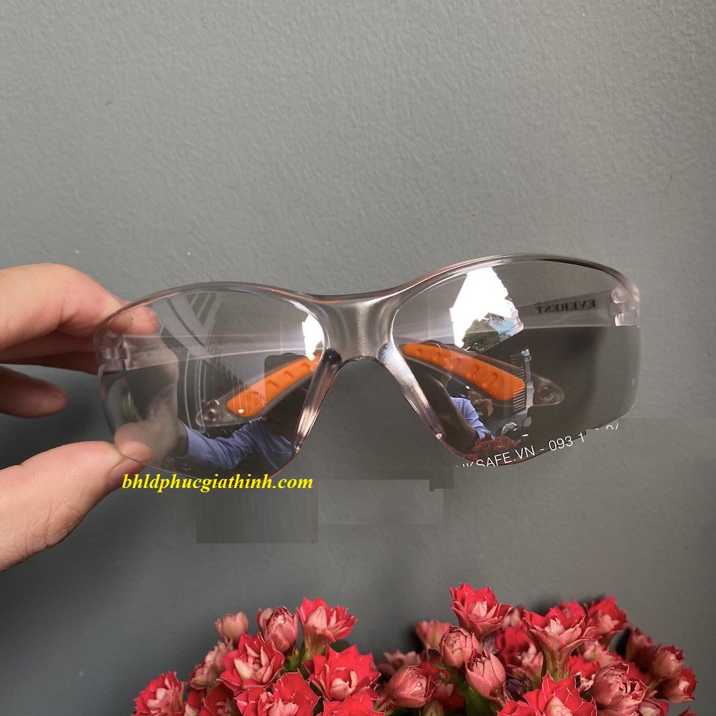 - KÍNH BẢO HỘ EVEREST EV203 TRẮNG TRONG TRÁNG SILVER được làm bằng chất liệu Polycarbonate, Có khả năng chống bụi, chống các tia UV, UB lên tới 99,99%