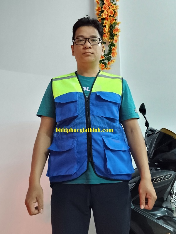 Áo bảo hộ Ghi lê phản quang 4 túi hộp vải Ford phối màu