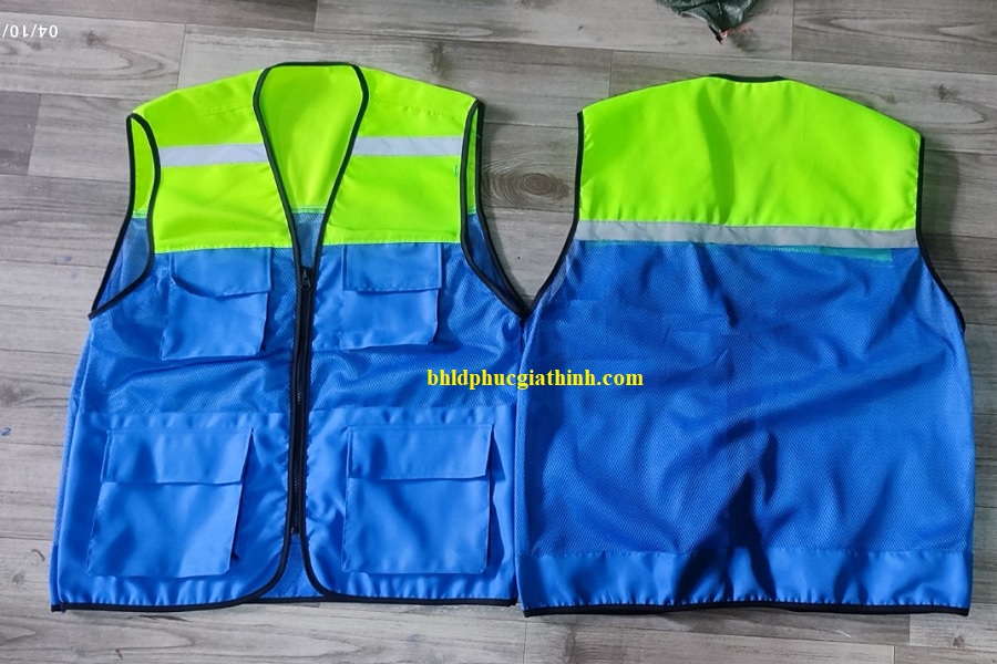 - Áo bảo hộ Ghi lê phản quang 4 túi hộp vải Ford được thiết kế phối màu nổi bật, với nữa thân trên là màu xanh chuối và nữa thân dưới là màu xanh bích