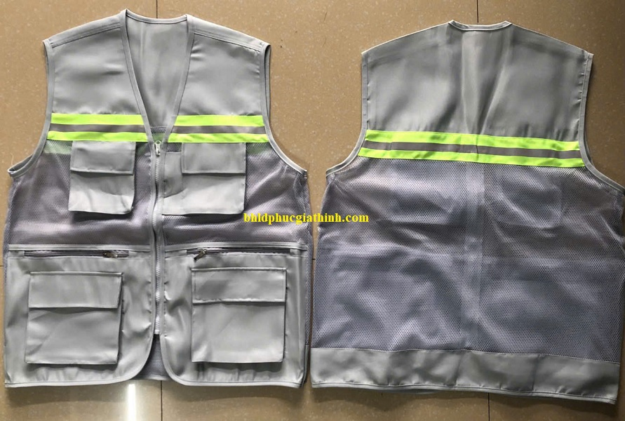 Áo bảo hộ Ghi lê phản quang 6 túi 3 dây kéo