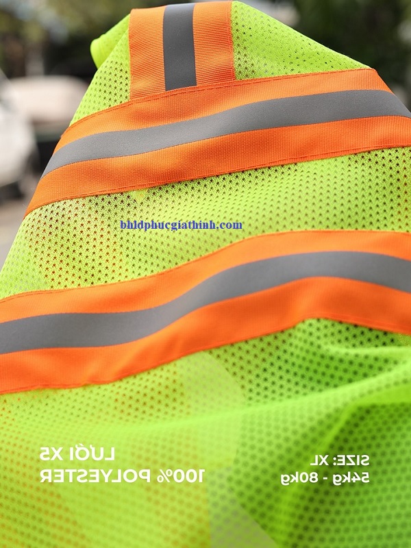 - Áo lưới xanh chuối phản quang cam sọc khoá kéo 2 túi lưới được làm từ chất liệu sợi polyester cao cấp, có độ co dãn nhẹ: Mang lại sự thoải mái tối đa, thích hợp cho cả mùa hè nóng bức.