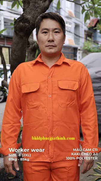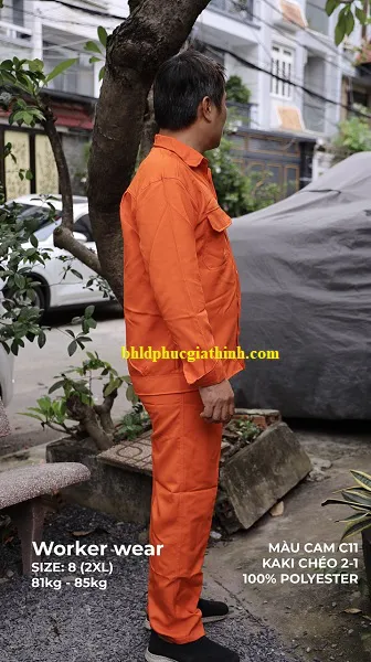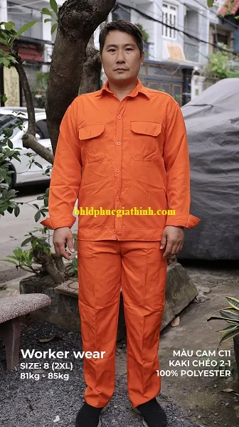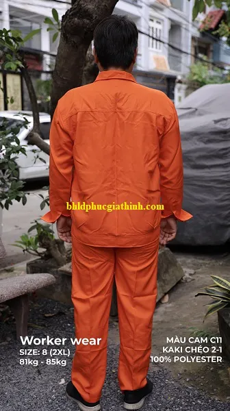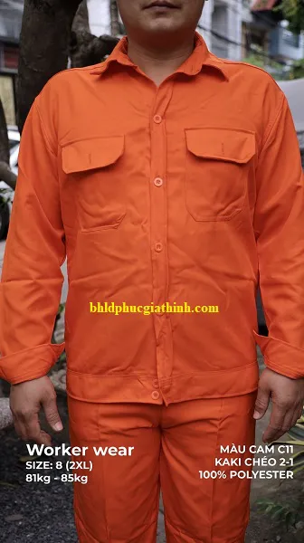 | Tên sản phẩm | Quần áo bảo hộ màu cam vải kaki chéo 2-1 poly cao cấp |