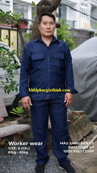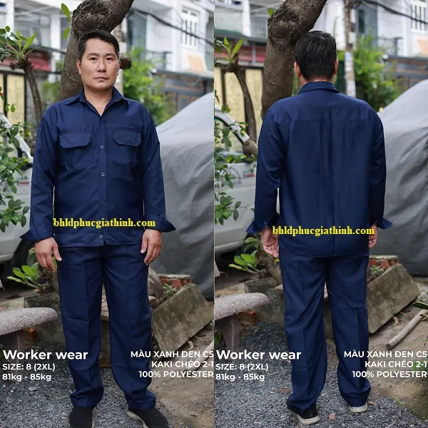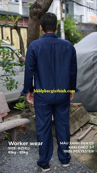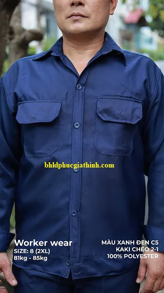 Quần áo bảo hộ màu xanh đen vải kaki chéo 2-1 poly cao cấp
