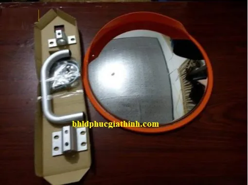- Gương cầu lồi Inox 304 D320mm được thiết kế có mí che, viền gương màu cam đỏ nổi bật