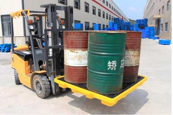 - Pallet nhựa chống tràn dầu và hoá chất 4 phuy có dung tích chứa 150 lít chất lỏng đổ tràn.